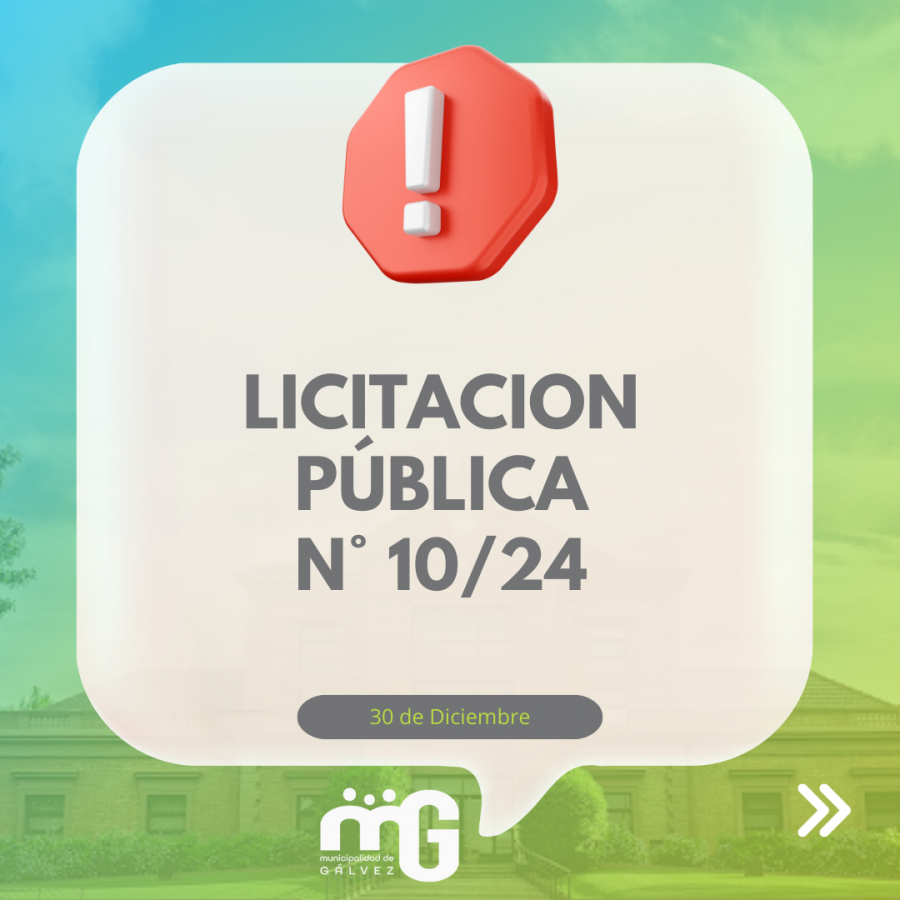 La Municipalidad de Gálvez, llama a Licitación Pública Nº 10/24, hasta el día 14 de Enero