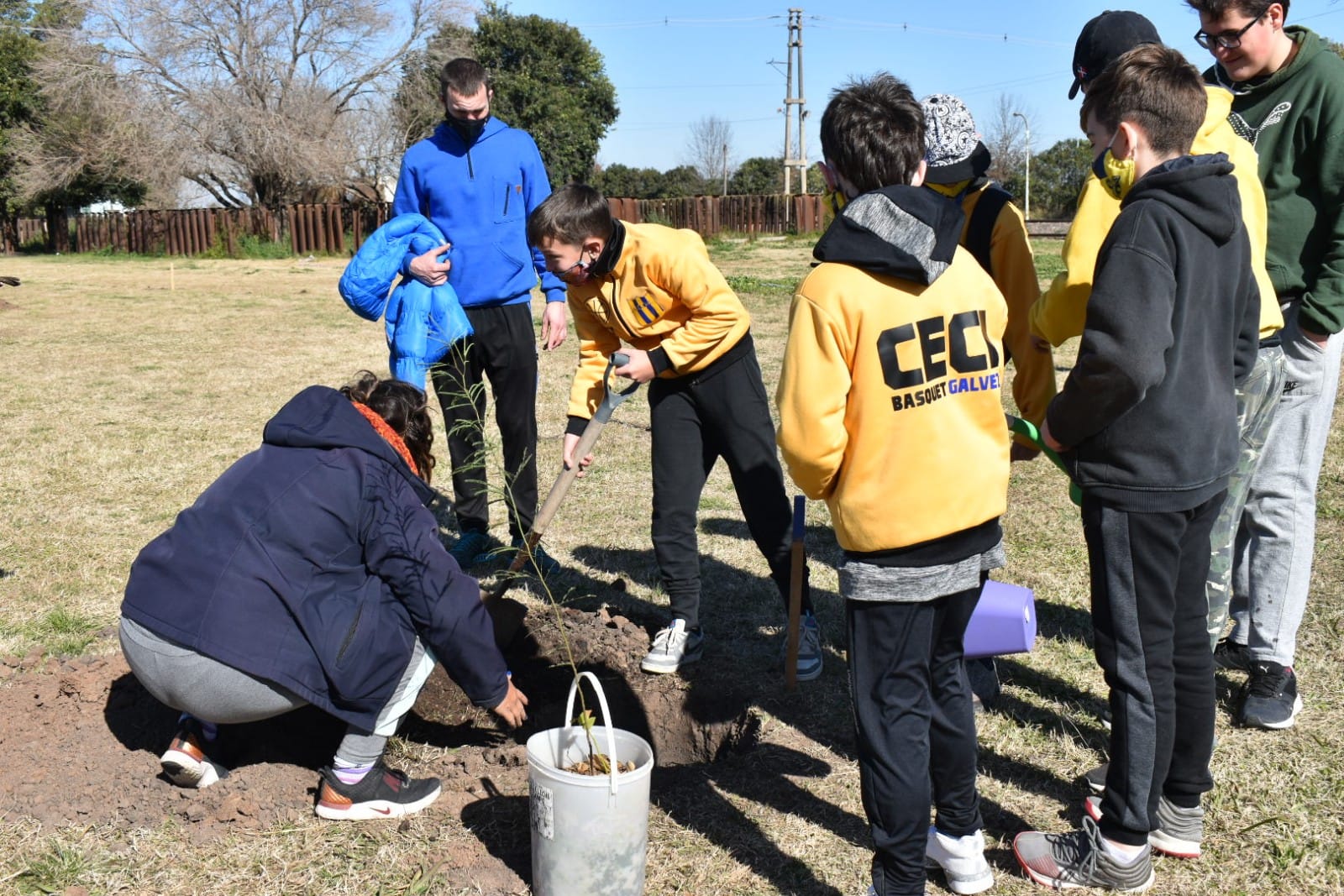 “En realidad, hoy quisimos ensamblar el día del amigo con que los chicos se hagan amigos del árbol, que sean ellos quien de alguna manera representen y tengan la esperanza de verlo crecer y como defenderlo y no que después tengan que ver como se los tala. Estuvieron muy activos, muy participativos, con mucho entusiasmo y les hemos explicado que naturalmente y geográficamente nosotros vivimos en una zona de espinales. Todavía cuando vamos de Gálvez a Arocena encontramos pequeños parchecitos de chañares, espinillos, algunos algarrobos. Esto es lo que se está volviendo a plantar.” También, agregó “Los algarrobos blancos que hoy plantamos son los mismos que el año pasado, en un momento de mucha tristeza, porque estábamos viendo cómo se incendiaban las islas, como se quemaban los pastizales y como se destruyen los ecosistemas, entonces dijimos, algo tenemos que hacer, volvimos a sembrar y el día de mañana hacer pequeños mini bosque de nativas.”
