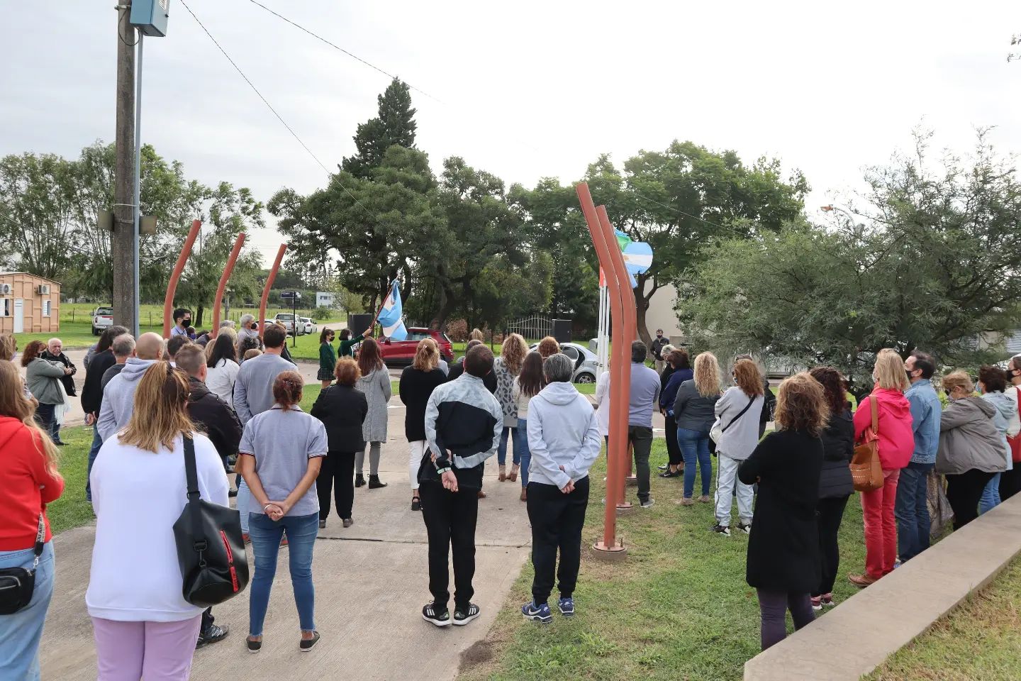Pasadas las 17.30 hs, el acto comenzó con unas palabras de bienvenida a los presentes para dar paso al Himno Nacional Argentino. Luego, se dirigió a los presentes la delegada gremial referente de AMSAFE, Ma. José Alonso y Gustavo Galante, que en representación de la Biblioteca Popular Dr. Andres Egaña leyó "3155, el número de la tristeza" de Liliana Bodoc.