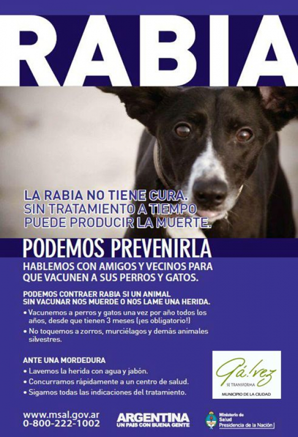 Desde la Subsecretaría de Zoonosis y Medio Ambiente, se recuerda a la Ciudadanía que la Vacunación Antirrábica es OBLIGATORIA y GRATUITA, para todos los perros y gatos a partir de los 3 meses de edad y durante toda la vida de la mascota.La aplicación es anual y puede realizarse tanto en el Quirófano del Sistema Municipal de Salud Animal (SiMuSA), ubicado en el playón del ferrocarril (intersección de calles Belgrano y Lisandro de la Torre). Los días sábados de 9 a 13 hs y a partir del Martes 2/4, la misma se realizara de lunes a viernes de 13 a 15 hs en el CEDA. La campaña se desarrolla en conjunto con Reserva Canina y Adopciones Felinas. También pueden realizarse en clínicas veterinarias privadas.